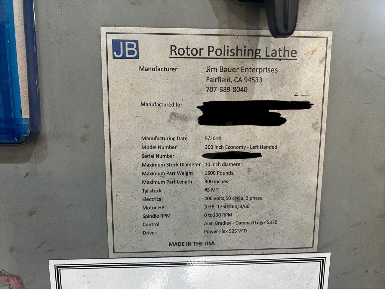 Professional-grade Rotor Polishing Machine built by Jim Bauer Enterprises, designed specifically for resurfacing and polishing rotors used in oilfield applications, progressive cavity pumps, and downhole tool manufacturing.